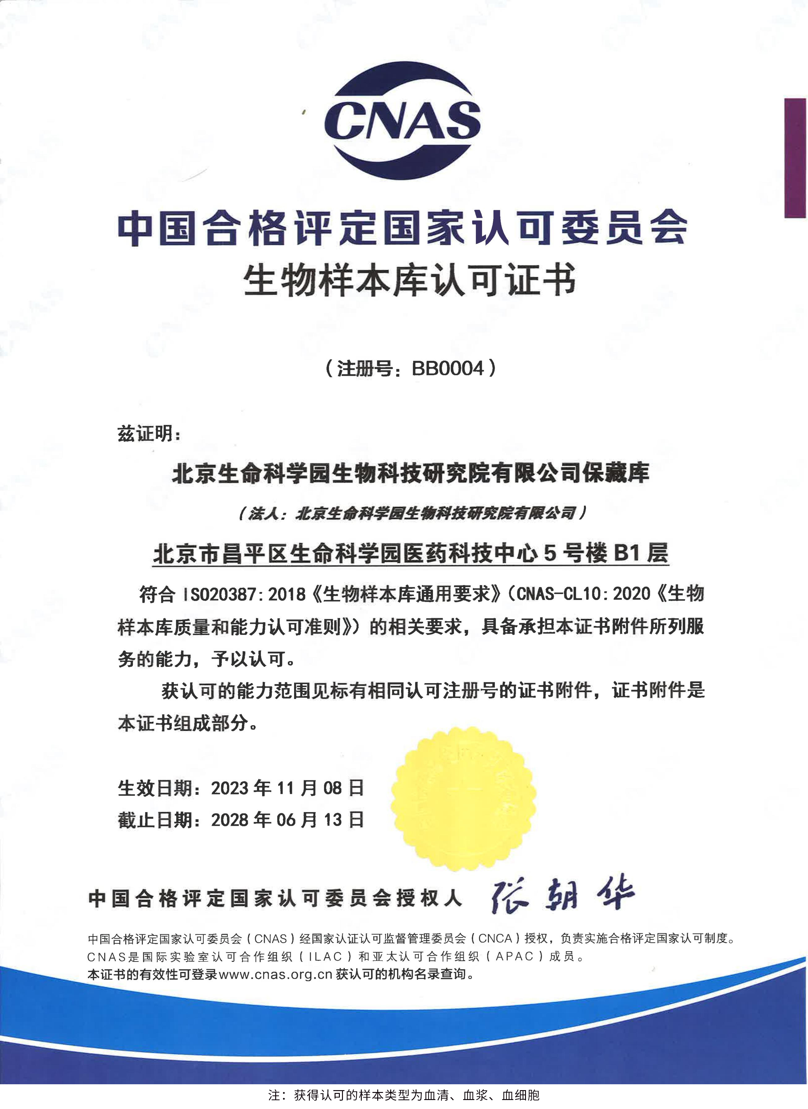 北京生命科學(xué)園生物科技研究院(以下簡稱“北京生物樣本資源庫”)(Biobank of Life Science Park,簡寫“BoLSP”)是一家由北京市科委和中關(guān)村生命科學(xué)園共同支持設(shè)立的第三方生物樣本庫公共服務(wù)平臺(tái),秉承北京重大疾病臨床數(shù)據(jù)和樣本資源庫(以下簡稱“北京庫”)(Beijing Biobank of Clinical Resources,BBCR)十余年的發(fā)展成果,聚合眾多臨床樣本專家的專業(yè)共識(shí),致力于在生命科學(xué)、生物醫(yī)藥研究領(lǐng)域發(fā)揮銜接樣本資源持有者與研究者的橋梁作用,解決生物樣本資源開發(fā)上下游信息不對稱、資源共享困難等問題。研究院在北京中關(guān)村生命科學(xué)園昌平園區(qū)建立了2000㎡生物樣本庫,最大存儲(chǔ)規(guī)模達(dá)1000萬份。研究院遵循CNAS-CL10:2020《生物樣本庫質(zhì)量和能力認(rèn)可準(zhǔn)則》,同時(shí)結(jié)合北京庫過去十年的工作經(jīng)驗(yàn)與教訓(xùn),建立了一套完善的生物樣本保藏質(zhì)量管理體系,從人、機(jī)、料、法、環(huán)、控多個(gè)角度,實(shí)現(xiàn)生物樣本保藏過程的全面質(zhì)量控制,先后獲得國家科技部頒發(fā)的人類遺傳資源保藏行政許可證書和中國合格評定國家認(rèn)可委員會(huì)(China National Accreditation Service for Conformity Assessment,CNAS)頒發(fā)的“CNAS認(rèn)可證書”。